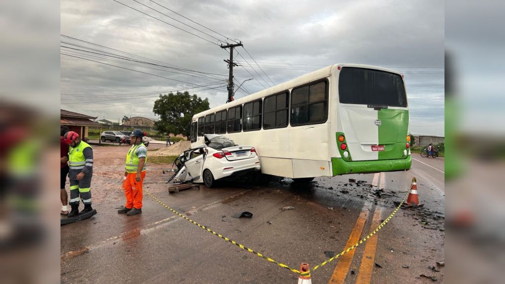 Um grave acidente de trânsito foi registrado na madrugada deste sábado (1º) na rodovia PA-252, no bairro Almir Gabriel, em Moju, resultando na morte do adolescente João Pedro de Araújo Brito, de 14 anos. Ele dirigia um carro de passeio que colidiu frontalmente com um ônibus após invadir a contramão.