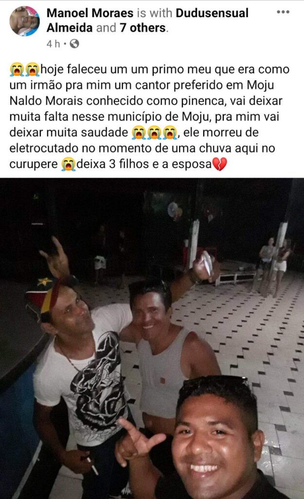 Na tarde deste domingo (30), ele estava em sua residência na Vila Curuperé, quando, após um forte temporal, Naldo Moraes ou ‘Pinenca’ como era conhecido, foi retirar uns galhos de árvores que tinham caído em cima de sua casa, momento em que ele esbarrou em um fio de energia elétrica desencapado e acabou morrendo eletrocutado.