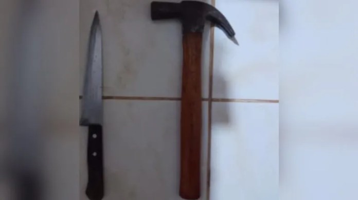 O homem estaria segurando um martelo e a mulher portava uma faca. Ainda de acordo com a PM, ambos teriam relatado no local que iriam atentar contra vida um do outro.