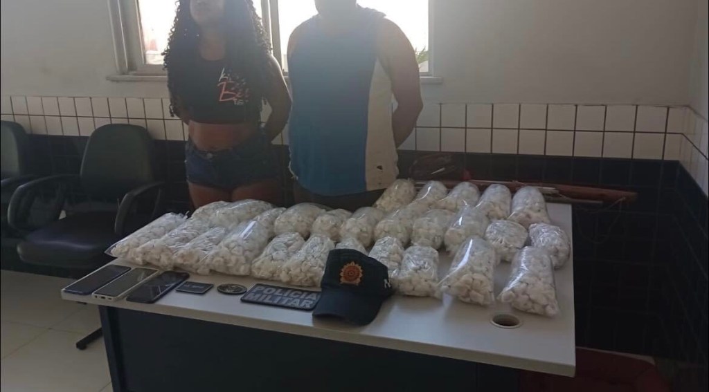 Uma mulher detida ainda tentou subornar os policiais militares do 14° com R$ 30.000,00, mas foi encaminhada para a delegacia junto com 2704 invólucros de óxi.