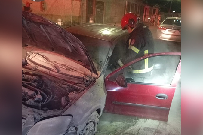 O dono do carro utilizou um extintor para controlar as chamas, impedindo que o veículo fosse destruído.