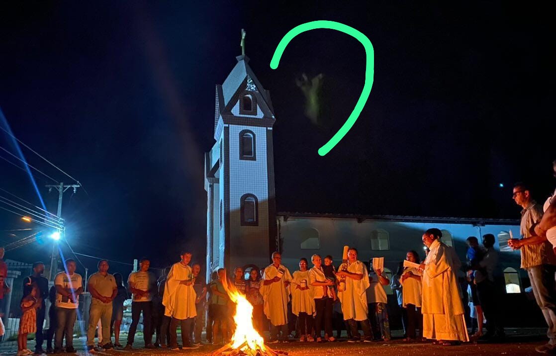Na noite do último sábado, 08 de abril, no momento em que a comunidade são João Batista, no distrito Nova Vida, realizava a vigília pascal foi registrado em uma das fotos algo que está dividindo opiniões entre os fiéis, muitos relatando ver o próprio Cristo crucificado.
