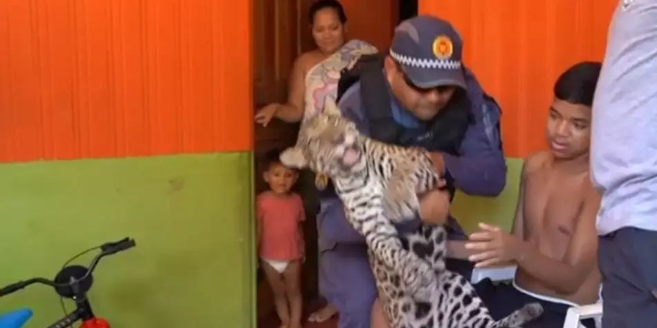 Um filhote de onça-pintada de oito meses foi resgatado pela Polícia Militar do Amazonas, Santo Antônio do Içá, no interior do Amazonas. O animal nomeado como ‘Golias’ era animal de estimação de uma família. Foi a própria família que adotou o filhote de onça, que decidiu comunicar as autoridades de entregar o animal.