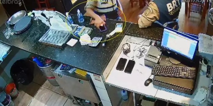 De acordo com os funcionários, o celular era de uso exclusivo do estabelecimento. Segundo a denúncia, dois agentes do BRT Seguro foram almoçar no restaurante. Após pagar a conta, a dupla foi embora e um funcionário percebeu o sumiço do aparelho celular e avisou ao proprietário do estabelecimento. Ao checar as câmeras de segurança, foi flagrado o momento que a guarda pega o aparelho. No vídeo, a mulher conversa com o colega e se encosta no balcão, no momento que não tinha nenhum funcionário perto. A agente pegou o celular, colocou no bolso, pagou a conta e saiu.