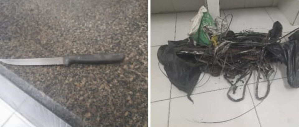 Os PMs apreenderam os fios e uma faca usada para cortá-los.