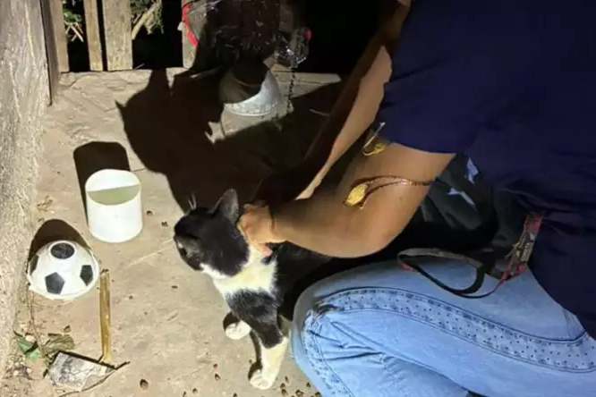 A prisão ocorreu após vizinhos do homem procurarem a unidade policial para denunciar que o suspeito teria deixado seu gato acorrentado dentro do imóvel há cerca de dois dias. Diante das informações, uma equipe se deslocou até o endereço indicado e constatou a veracidade da denúncia.