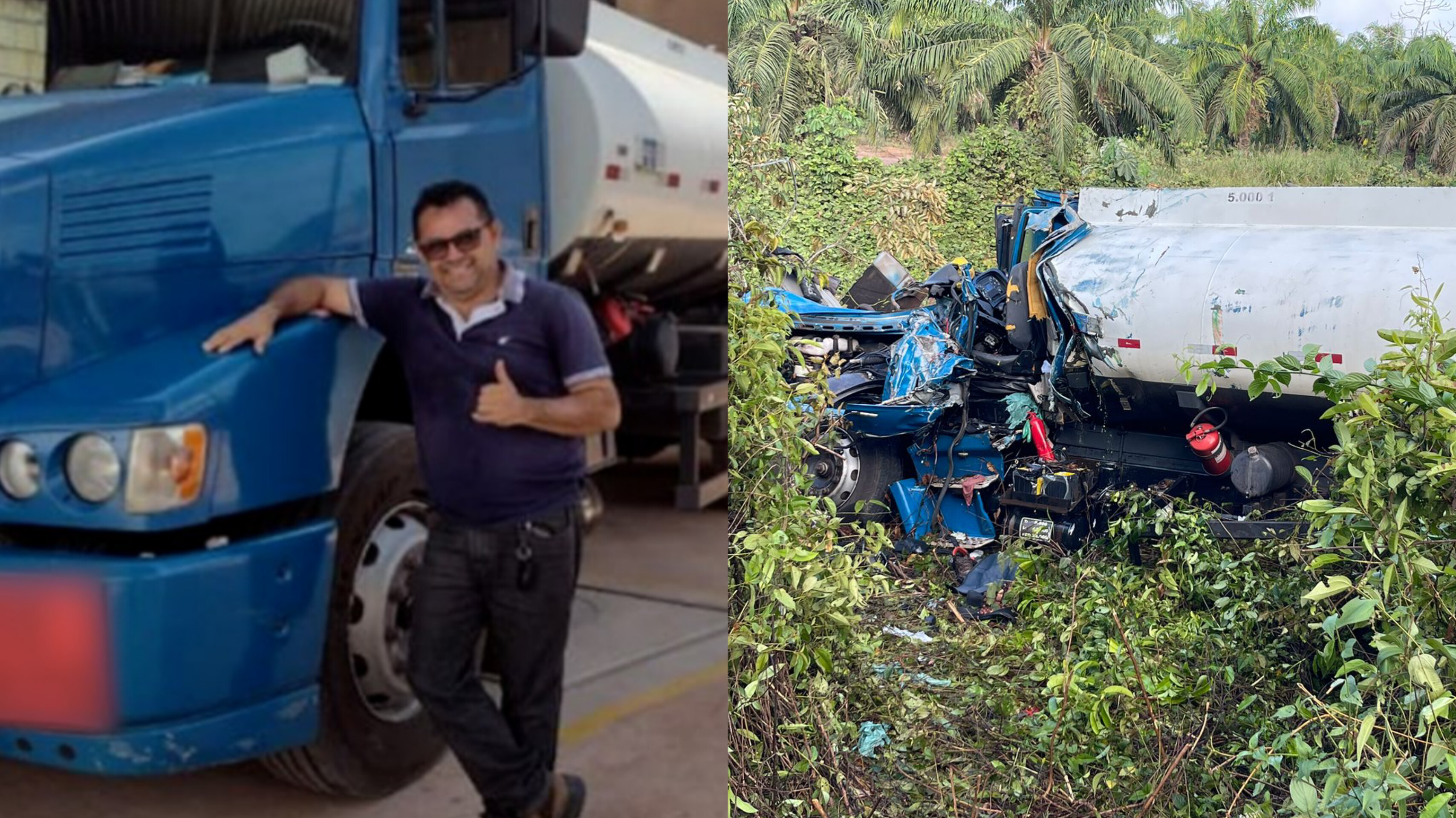 Ele ficou preso entre as ferragens e morreu na hora após colidir o caminhão que dirigia em um outro cheio de dendê.