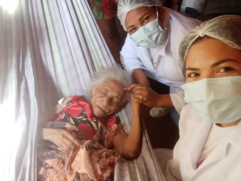 Alguns estão sendo vacinados por equipes de saúde em suas próprias residências, como foi o caso da dona Gregória Aleixo Pantoja, que mora com a filha de 75 anos no bairro Novo Horizonte. Aos 105 anos, ela é a idosa mais velha imunizada no município até o momento.