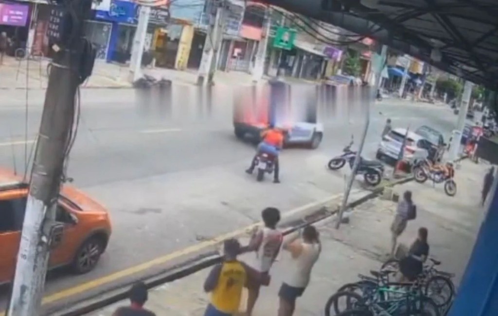 No vídeo, é possível ver o momento em que o idoso tenta atravessar a via e acaba sendo atingido pela motocicleta. Com a colisão, o condutor perde o controle do veículo e acaba se chocando contra um poste de energia elétrica.