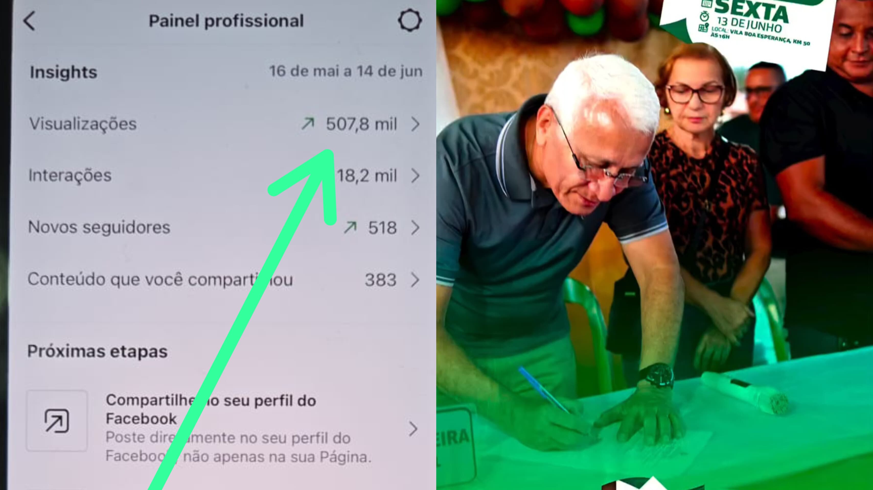 O prefeito de Moju, Rubens Teixeira, alcançou um marco significativo em suas redes sociais. De acordo com dados oficiais do próprio Instagram, sua conta registrou 507,8 mil visualizações nos últimos 28 dias. A plataforma atualiza esses dados mensalmente, refletindo o engajamento recente com os conteúdos publicados.