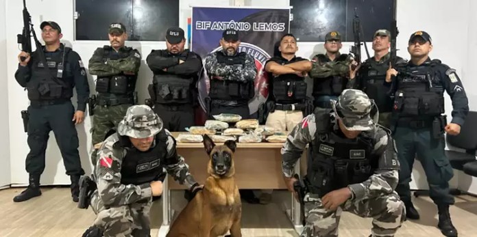 A ação foi realizada por agentes do Grupamento Fluvial de Segurança Pública e uma equipe da Polícia Militar, com ajuda de um cão farejador. As equipes identificaram no interior da embarcação duas mochilas contendo 10 tabletes de maconha, que totalizaram 11,135 kg. O material foi levado para a equipe de Polícia Civil que atua na Base Integrada Fluvial Antônio Lemos, para os procedimentos cabíveis.