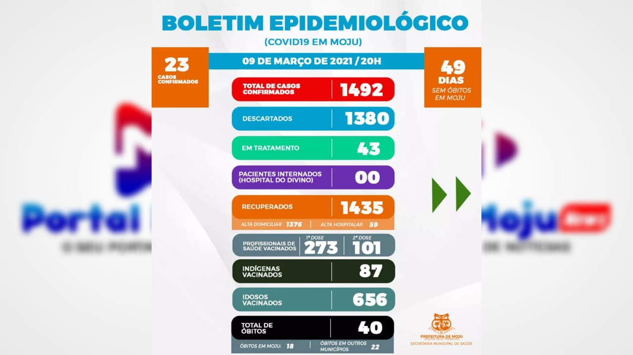 A Prefeitura Municipal de Moju, através da Secretaria Municipal de Saúde, registrou 23 novos casos da Covid-19 só nesta terça, 09.
