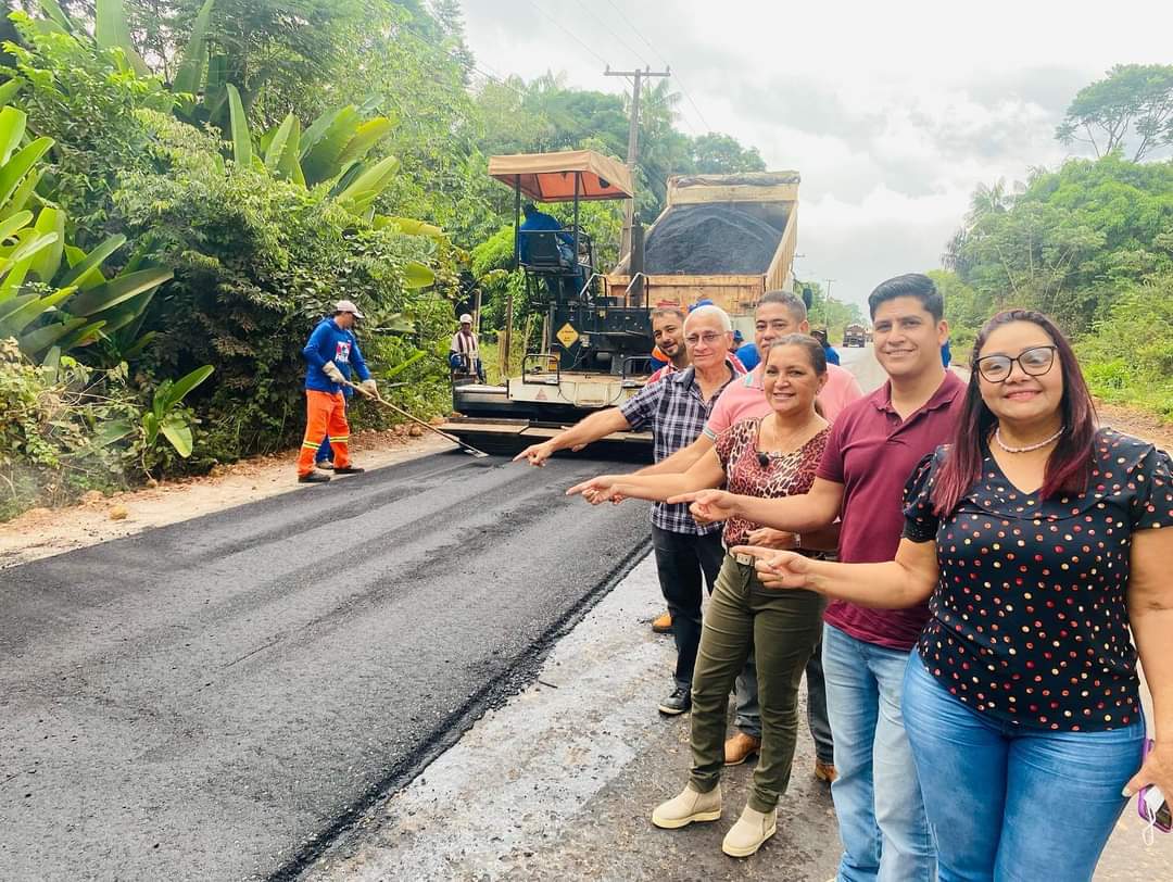 Depois, Nilma e equipe seguiram para a Sococo para acompanhar as obras do Governo do Estado de pavimentação da estrada que dá acesso à vila.