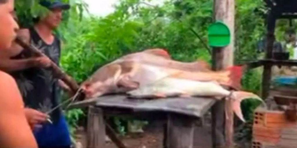 O caso ocorreu no domingo (19). Após a captura, o pescador repartiu o peixe com pessoas da comunidade onde ele vive.