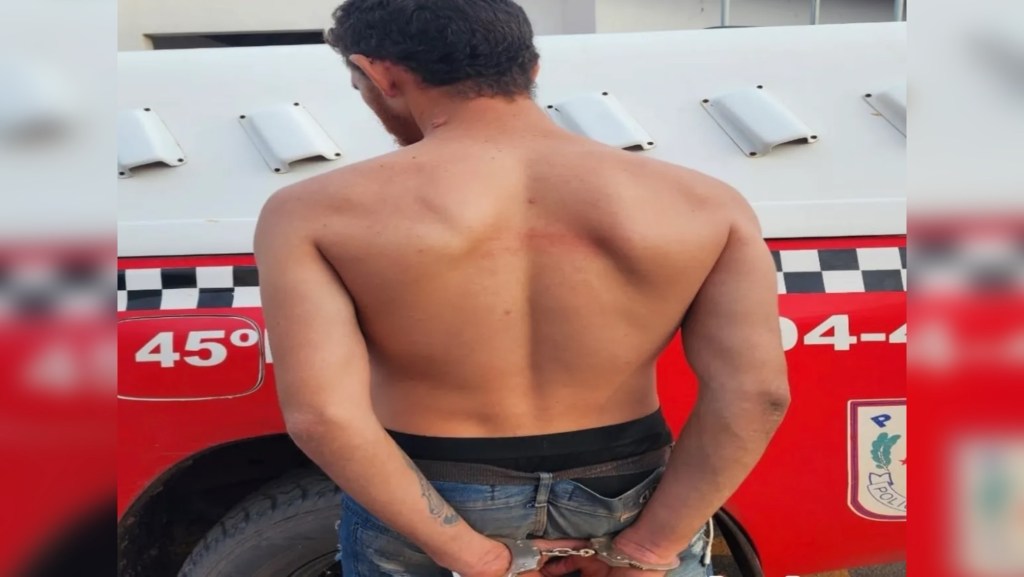 Devido à tentativa de fuga do indivíduo durante a abordagem, foi necessário o uso de algemas para garantir a segurança da operação e a ordem no local.