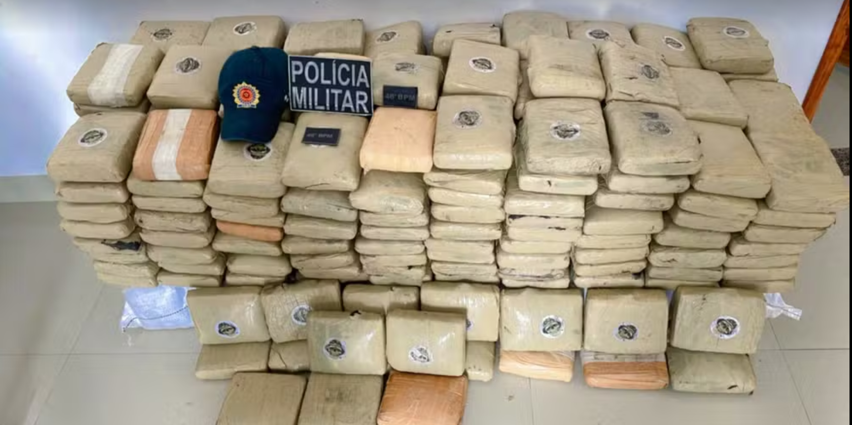 Com isso, os policiais inspecionaram o veículo deixado pelos suspeitos na fuga. Os agentes informaram que encontraram 340 tabletes da droga, totalizando 374,34 kg.