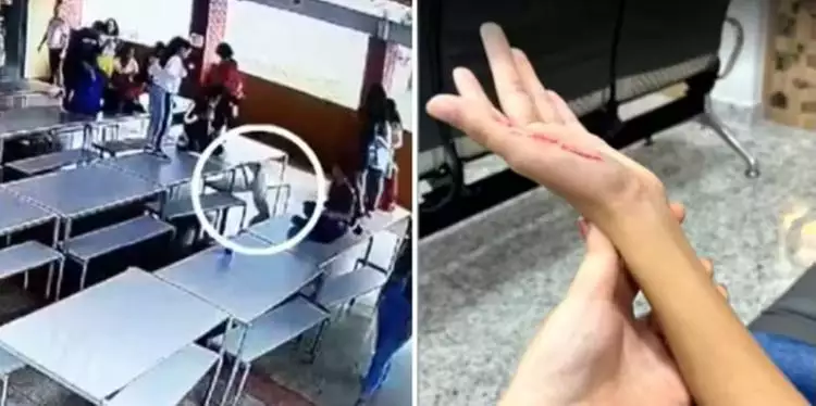 Em imagens feitas pela câmera de segurança da escola e compartilhadas na redes sociais, é possível ver o momento em que o cachorro entra na sala e as crianças se desesperam, subindo nas mesas. Em seguida, ele tenta pular nas carteiras e, como não consegue, puxa uma mochila, joga no chão e fica mordendo, balançando o rabo. Veja: