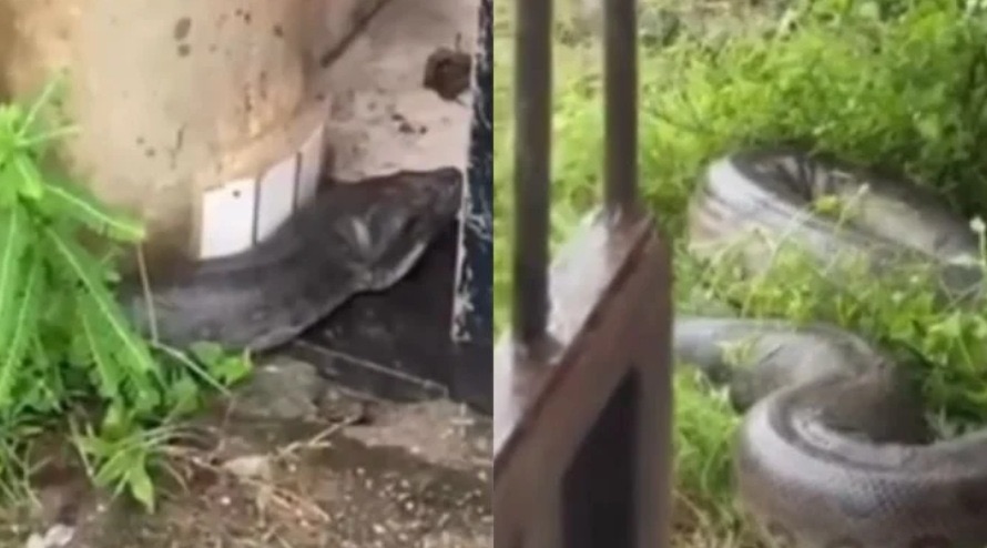 Segundo moradores da área, a cobra foi vista no momento em que uma moradora abriu o portão da residência para que as crianças saíssem para a escola.