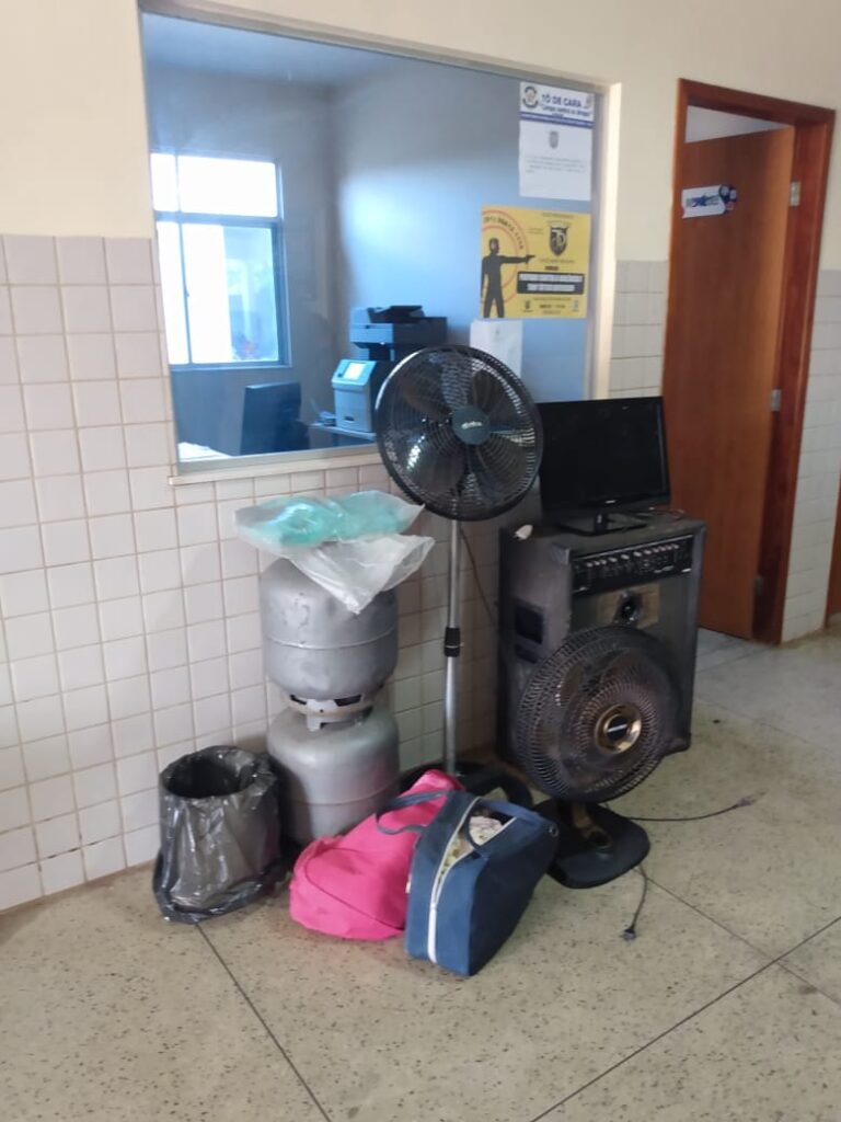 Foram recuperado pelas autoridades 01 caixa de som, 2 botijões de gás, 2 ventiladores, 1 TV LCD 24 polegadas, 01 DVD e 01 receptor de antena.